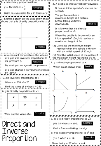 Direct And Inverse Proportion Gcse Revision Worksheet Teaching Resources